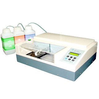 2、自動(dòng)式洗板機(jī):可根據(jù)用戶的設(shè)置完成規(guī)定次數(shù)與條數(shù)的洗板工作,有的具有簡單的存貯功能。主要目的是利用自動(dòng)化技術(shù),替代手工勞動(dòng)。其中有條式與板式之分。