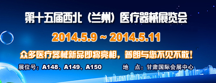 2014年第十五屆西北(蘭州)醫(yī)療器械展覽會將于5月9日至11日在蘭州甘肅國際會展中心隆重召開,此次展會預(yù)定展位面積20000平方米,參展企業(yè)超過300家,國內(nèi)知名醫(yī)療企業(yè)普朗醫(yī)療也在受邀之列,展位號為A148、A149、A150,屆時將為大家呈現(xiàn)最新醫(yī)療科技成果,敬請期待。