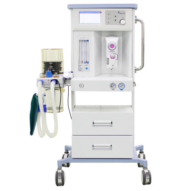 自1846年朗寧首先應(yīng)用乙醚麻醉以來(lái),吸入麻醉已日臻完善。所謂麻醉是指使有機(jī)體全部或局部暫失去知覺(jué),以便進(jìn)行外科手術(shù)治療的方法。麻醉的方法有多種,如針刺麻醉、注射麻醉及吸入麻醉等?,F(xiàn)代藥理學(xué)的發(fā)展,科學(xué)技術(shù)的進(jìn)步,特別是電子計(jì)算機(jī)技術(shù)的應(yīng)用,更使現(xiàn)代吸入麻醉的水平大大提高。吸入麻醉易于控制、安全、有效。是當(dāng)前醫(yī)院進(jìn)行手術(shù)時(shí)的首選。麻醉機(jī)就是利用吸入麻醉方法進(jìn)行全身麻醉的儀器。 麻醉機(jī)是通過(guò)機(jī)械回路將麻醉藥送入患者的肺泡,形成麻醉藥氣體分壓,彌散到血液后,對(duì)中樞神經(jīng)系統(tǒng)直接發(fā)生抑制作用,從而產(chǎn)生全身麻醉的效果。目前醫(yī)院使用全身麻醉的方法仍是以吸入麻醉為主。現(xiàn)代麻醉機(jī)正朝著智能化、集成化系統(tǒng)發(fā)展,各部件組合協(xié)調(diào)、靈活、可靠,結(jié)構(gòu)緊湊、合理,使用界面清晰友好,操作方便快捷。下圖這款是普朗醫(yī)療生產(chǎn)的一款麻醉呼吸機(jī)。特點(diǎn)如下: