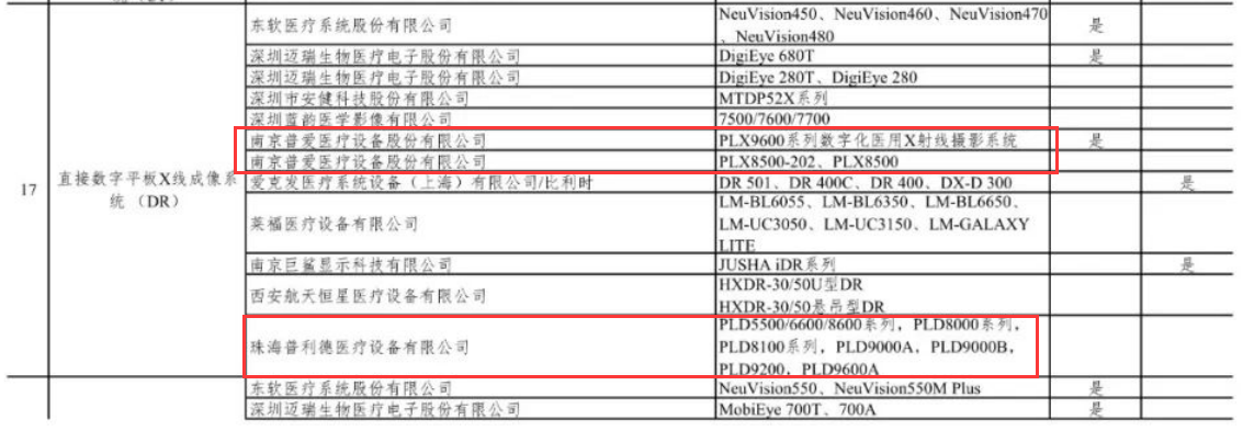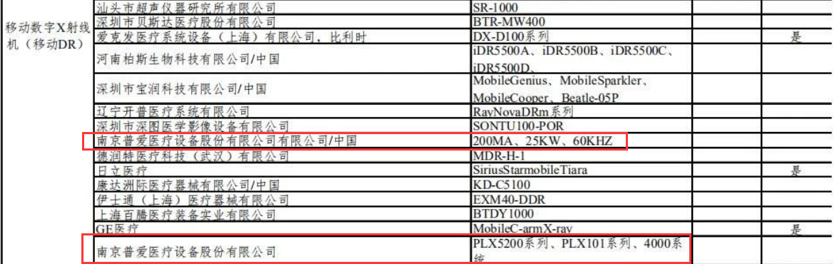 2020年2月26日,中國醫(yī)學(xué)裝備協(xié)會網(wǎng)站發(fā)布《關(guān)于推薦新冠肺炎疫情防治急需醫(yī)學(xué)裝備的通知(第三批)》,南京普愛醫(yī)療設(shè)備股份有限公司和珠海普利德公司包括“直接數(shù)字平板X線成像系統(tǒng)(DR)”、“移動數(shù)字x射線機(jī)(移動DR)”的幾個(gè)系列DR均獲得了推薦。