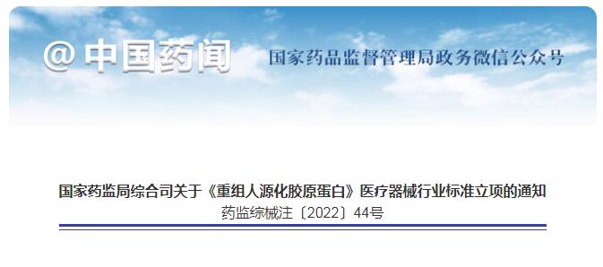 《重組人源化膠原蛋白》醫(yī)療器械行業(yè)標(biāo)準(zhǔn)將制訂