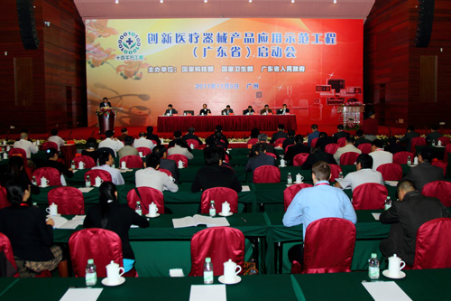 為提高全民健康水平,加快培育醫(yī)療器械戰(zhàn)略性新興產(chǎn)業(yè),讓創(chuàng)新成果更好地服務(wù)于醫(yī)療衛(wèi)生體系建設(shè)、保障醫(yī)療衛(wèi)生體制改革的順利實(shí)施,讓科技成果更好地惠及廣大公從,2011年11月9日,科技部、衛(wèi)生部和廣東省人民政府在廣州白云國(guó)際會(huì)議中心聯(lián)合舉辦了國(guó)家創(chuàng)新醫(yī)療設(shè)備產(chǎn)品應(yīng)用示范工程(廣東?。﹩?dòng)會(huì)??萍疾客鮽ブ懈辈块L(zhǎng)、衛(wèi)生部劉謙副部長(zhǎng)、廣東省人民政府宋海副省長(zhǎng)出席大會(huì)并作重要講話。廣東省科技廳李興華廳長(zhǎng)作廣東示范工程實(shí)施情況的工作報(bào)告。衛(wèi)生部科技教育司何維司長(zhǎng)、廣東省衛(wèi)生廳陳元?jiǎng)冱h組書(shū)記,國(guó)家醫(yī)療器械產(chǎn)業(yè)技術(shù)創(chuàng)新戰(zhàn)略聯(lián)盟代表,重慶、遼寧、浙江、江蘇等省市科技廳、衛(wèi)生廳代表,廣東省各地市科技局、衛(wèi)生局的負(fù)責(zé)同志,國(guó)家及廣東省醫(yī)療器械公司代表,廣東示范醫(yī)療機(jī)構(gòu)代表以及新聞媒體等共約300人參加了會(huì)議。啟動(dòng)會(huì)由科技部社會(huì)發(fā)展科技司楊哲副司長(zhǎng)主持。